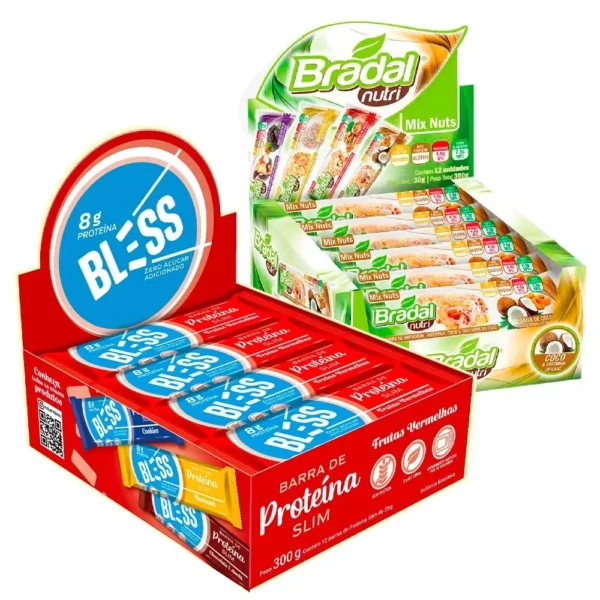 kit Barra de Proteína Bless 25g Zero Açúcar + Barra de Mix Nuts 30g Bradal Nutri